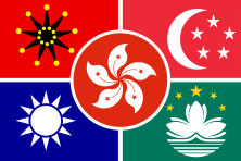 Flag of the Chinese language made by combining the flags of multiple Chinese speaking areas.